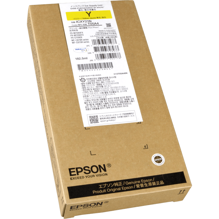 WF-C87xR serisi yazıcılar için özel olarak optimize edilen T05A4, Epson'un DURABrite™ Ultra pigment mürekkep teknolojisini kullanır. Bu teknoloji sayesinde, kurumsal grafiklerinizde ve sunumlarınızda canlı, parlak ve profesyonel sarı tonları elde ederken; çıktılarınız suya, ışığa ve dağılmaya karşı son derece dirençli olur. Orijinal Epson mürekkebi kullanımı, yazıcınızın PrecisionCore™ baskı kafasını korur ve cihazınızın uzun ömürlü performans sergilemesini garanti altına alır.
